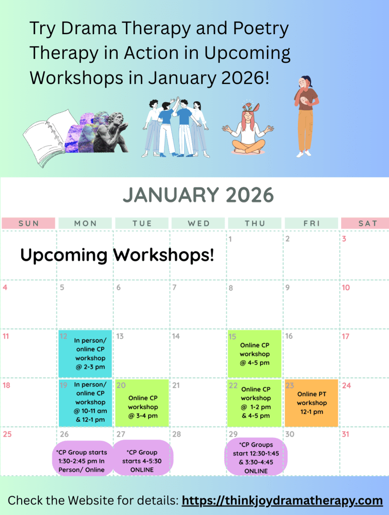 Register for online and in-person/hybrid workshops to find out more about group therapy sessions, limited groups, how the Creative Arts Therapies are used in Psychotherapy practice and the facilitator.